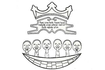 Fonz tiene como armas heráldicas un escudo de plata con una fuente de color natural de la que manan varios chorros de agua. Antiguamente ostentaba bordura de plata con la leyenda en sable "Fons sine fonte da aquam ex tua fome".
