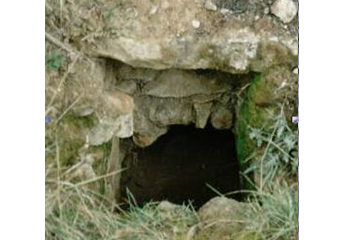Registro de la conducción La pared que cierra la balsa está realizada mediante piedra y barro, hallándose en un lateral de la misma un departamento medio enterrado conocido como la bullonera o desagüe de la basa, que se halla cubierto por un tizón. La utilización era sencilla: una vez que la balsa se había llenado de agua ésta pasaba al departamento de la bullonera, desde donde se dirigía a un brazal cubierto, hecho de losas y piedras; el departamento está construido mediante piedras, tierra y yeso y tiene un acceso por una pequeña puerta. El manantial que la abastece se encuentra a unos 200 metros; tiene éste unos 8 metros cuadrados de superficie y 3 metros de altura. Realizado a partir de piedras, barro y yeso, el techo se construyó en bóveda de piedra.